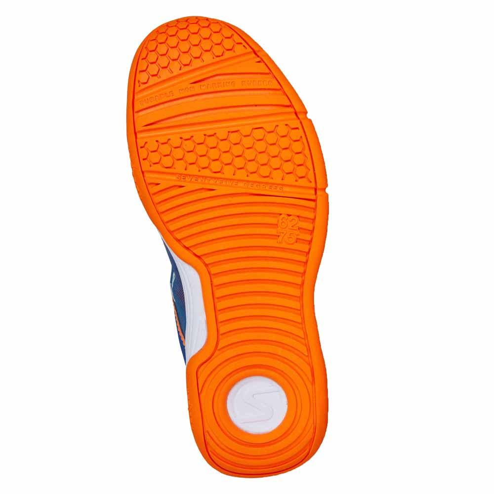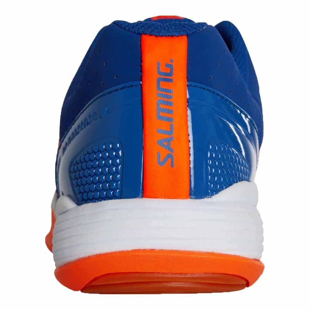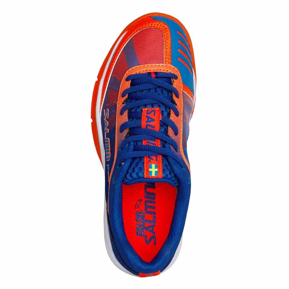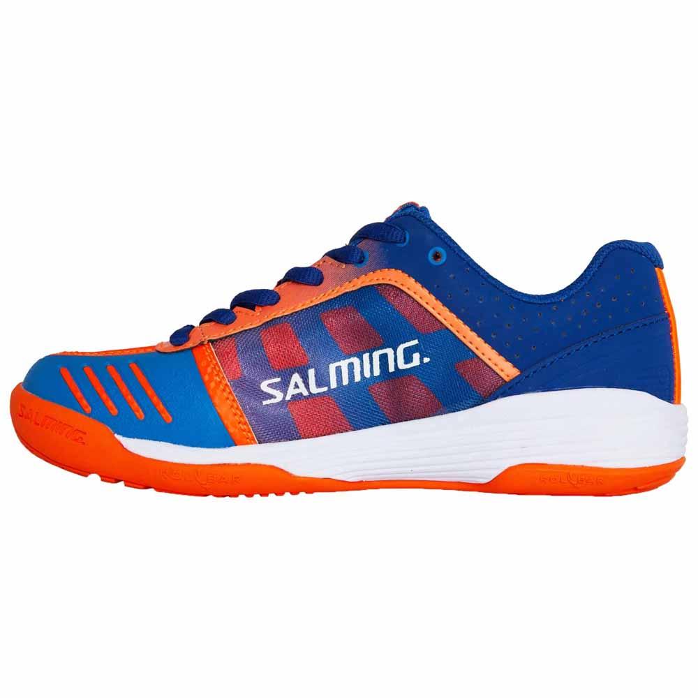 Salming Falco se basa en la exitosa y popular Salming Viper 4. Cuenta con el perfil más bajo de todos los zapatos interiores de Salming, que lo conectan a la cancha y le brindan una gran sensación, velocidad y características de estabilidad. El compuesto de la entresuela es un EVA liviano y en la zona de impacto del talón hay un inserto de amortiguación C35 que está diseñado para reducir las fuerzas de impacto al embestir.Presupuesto:Suela intermedia: ligera EVA + C35Peso: JR 255g / Kid 212g
